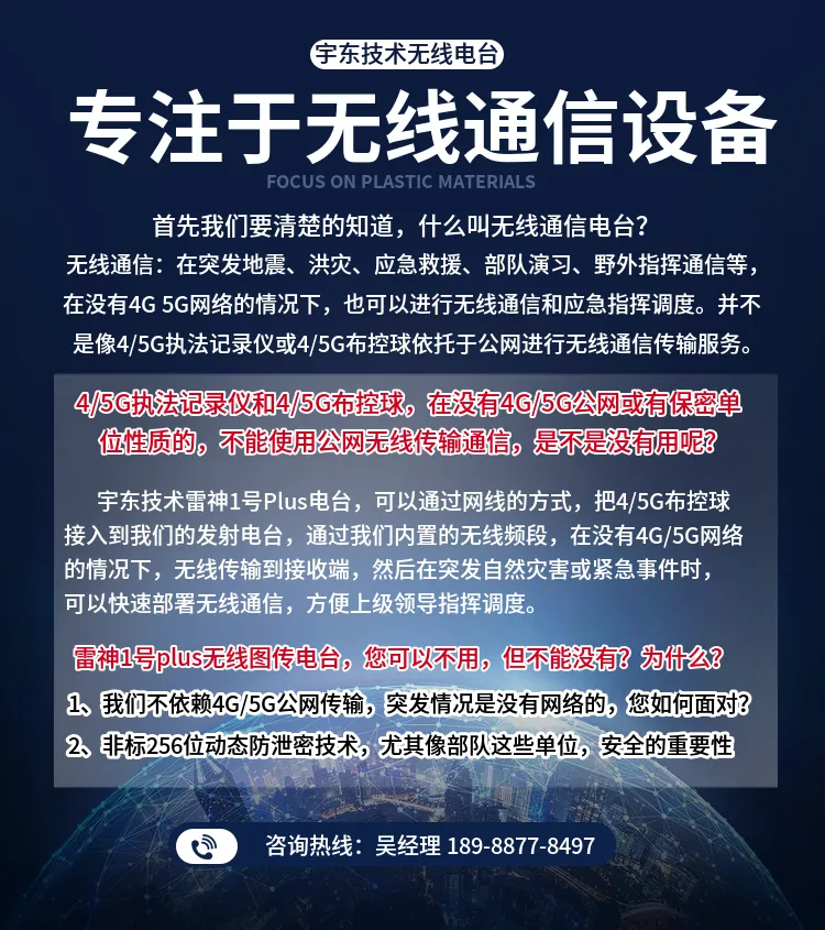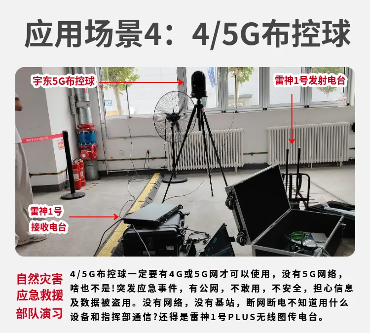 宇東技術雷神1號PLUS背負式高清無線圖傳電臺,是公司針對應急救援指揮、公安、反恐作戰、消防救援、邊防執勤、海警海關巡檢、部隊拉練演習、森林消防等,在突發重大事件,斷網斷電,通信中斷的情況下,現場工作人員通過宇東雷神1號PLUS單兵圖傳電臺,把現場采集的數據實時無線傳輸到指揮車/臨時指揮部大屏幕,讓指揮部領導對現場情況一目了然,節省了到達現場的時間,可快速做緊急指揮調度,最大限度的減少突發事件帶來的各種損失。